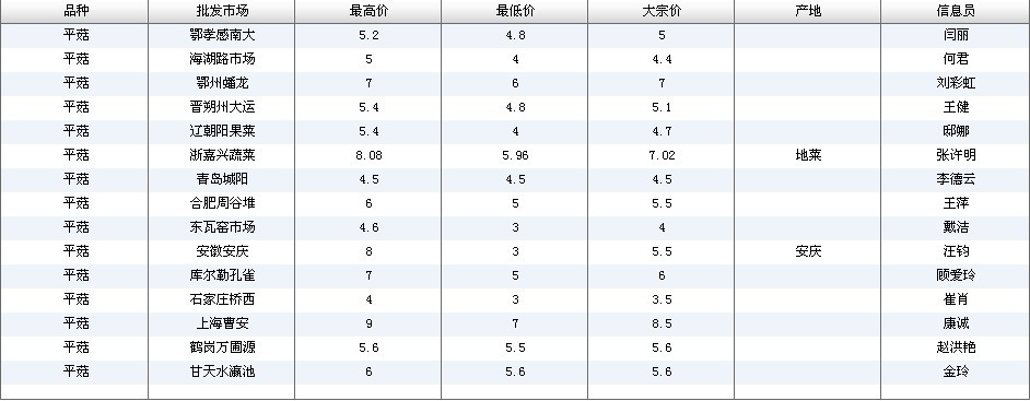 2012.02.28 平菇全国批发市场价格行情 来源:中国农业信息网