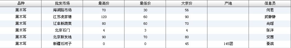 2013年全国黑木耳批发市场价格行情