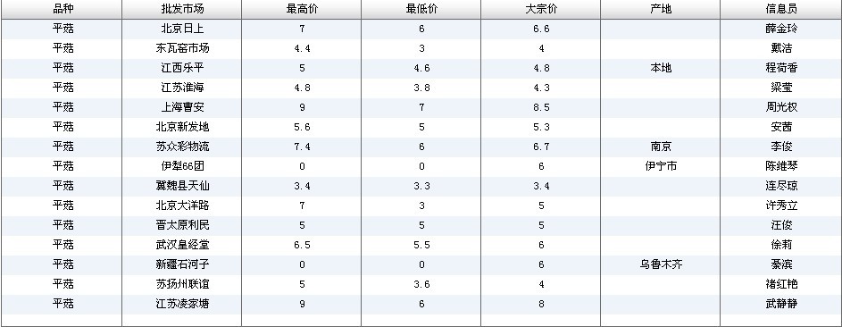 2012.02.29 平菇全国批发市场价格行情 来源:中国农业信息网