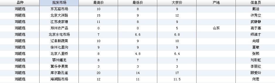 2012.02.29 鸡腿菇全国批发市场价格行情 来源:中国农业信息网