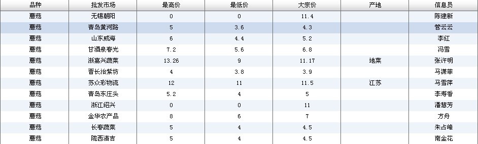 2012.03.01 蘑菇全国批发市场价格行情 来源:中国农业信息网