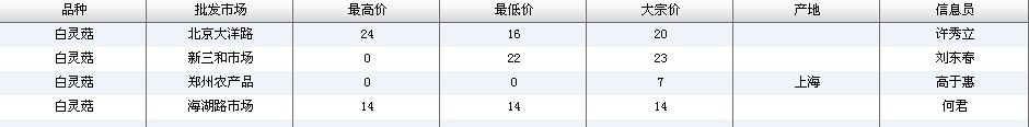 2012.03.01 白灵菇全国批发市场价格行情 来源:中国农业信息网