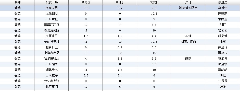 2012.03.01 香菇全国批发市场价格行情 来源:中国农业信息网