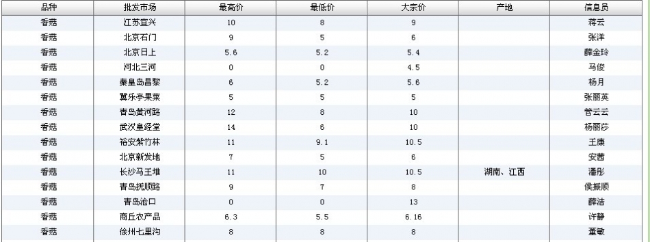 2012.03.02 香菇全国批发市场价格行情 来源:中国农业信息网