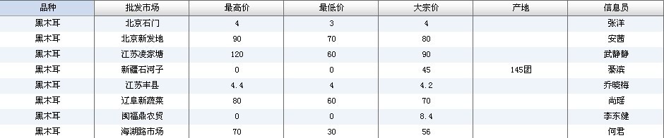2012.03.02 黑木耳全国批发市场价格行情 来源:中国农业信息网