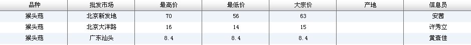 2012.03.05 猴头菇全国批发市场价格行情 来源:中国农业信息网