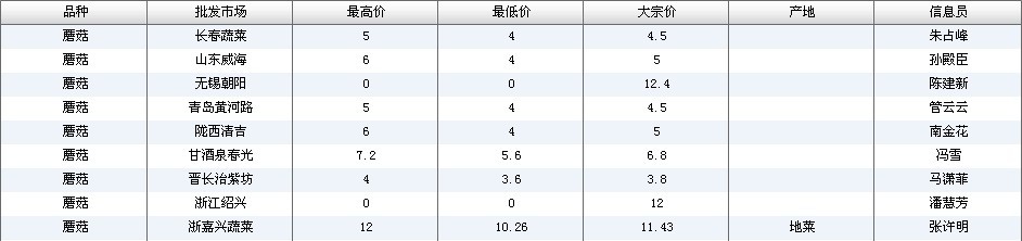 2018年10月11日蘑菇全国批发市场行情