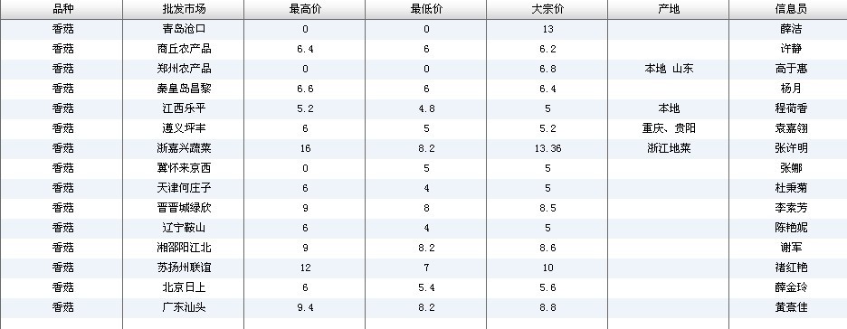 2012.03.06 香菇全国批发市场价格行情 来源:中国农业信息网