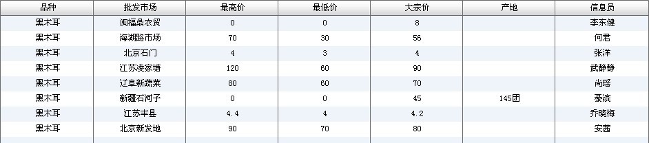 2012.03.07 黑木耳全国批发市场价格行情 来源:中国农业信息网
