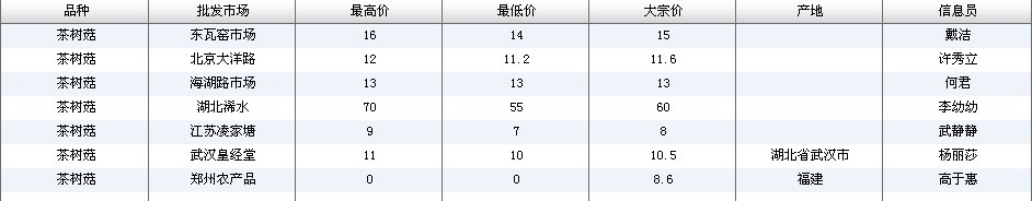 2012.03.08 茶树菇全国批发市场价格行情 来源:中国农业信息网