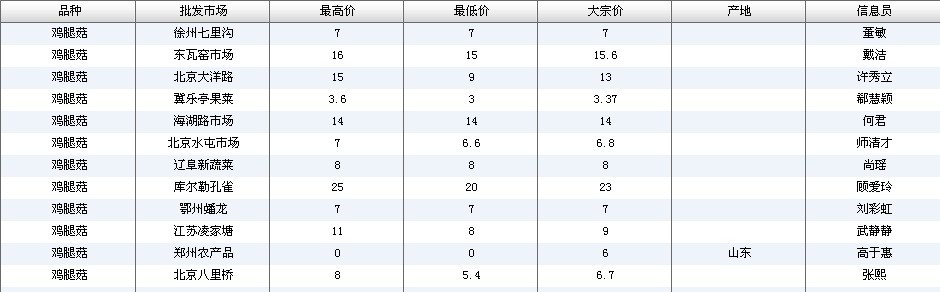 2012.03.08 鸡腿菇全国批发市场价格行情 来源:中国农业信息网