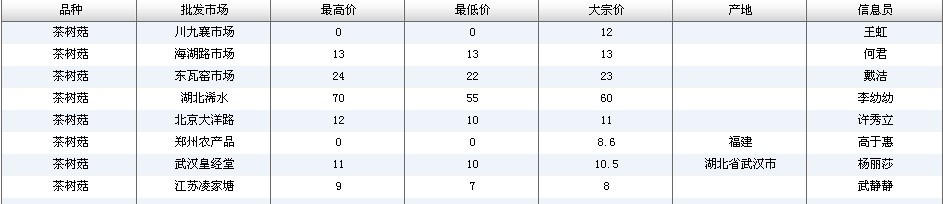 2012.03.09 茶树菇全国批发市场价格行情 来源:中国农业信息网