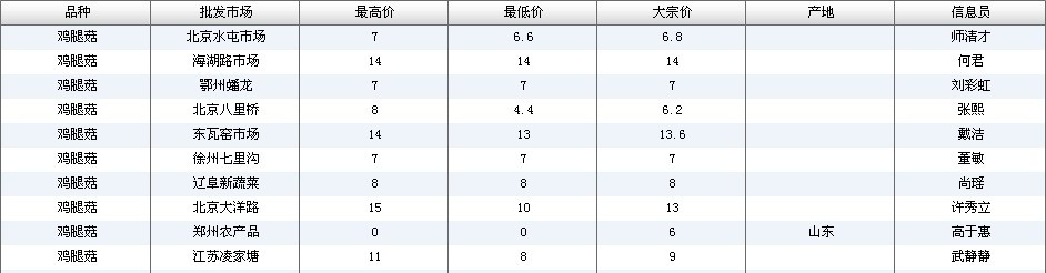 2012.03.09 鸡腿菇全国批发市场价格行情 来源:中国农业信息网