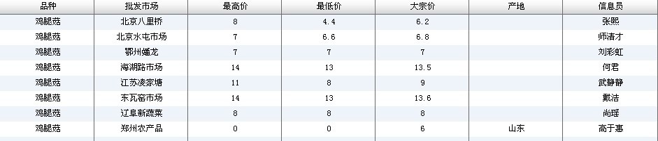 2012.03.10 鸡腿菇全国批发市场价格行情 来源:中国农业信息网