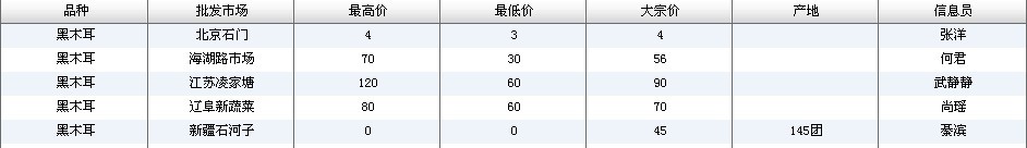 2012.03.10 黑木耳全国批发市场价格行情 来源:中国农业信息网