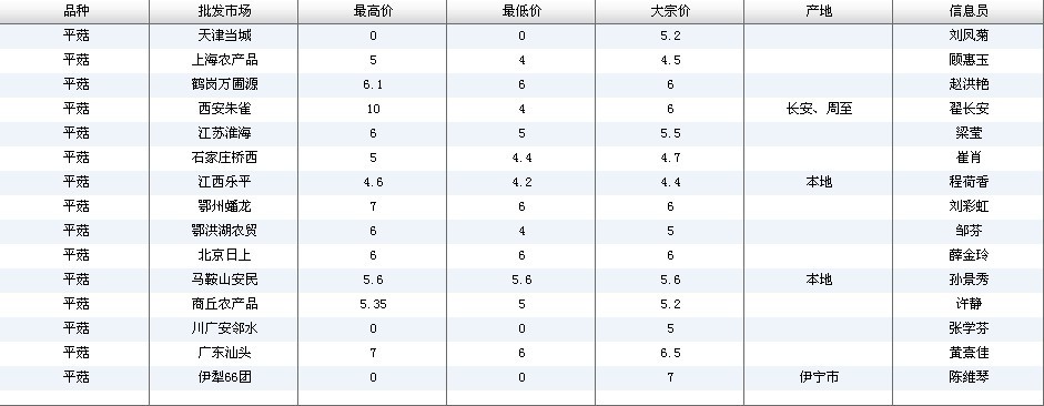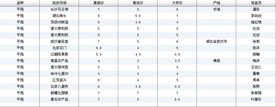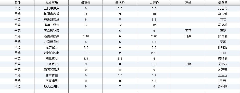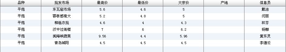 2012.03.12 平菇全国批发市场价格行情 来源:中国农业信息网