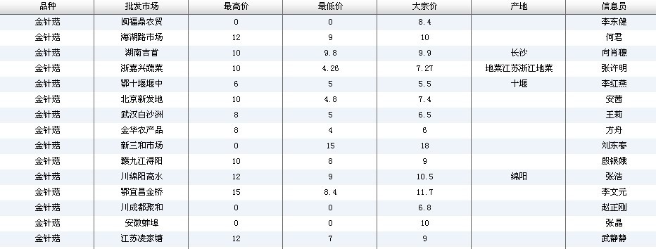 2012.03.12 金针菇全国批发市场价格行情 来源:中国农业信息网