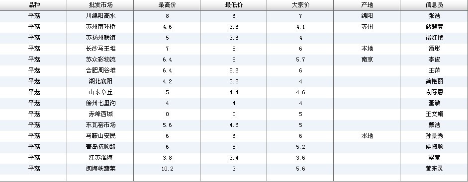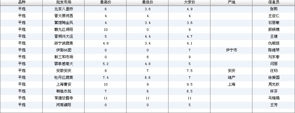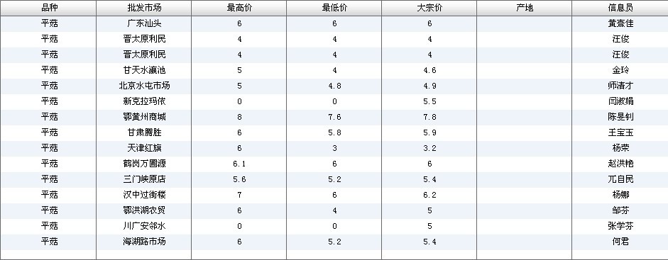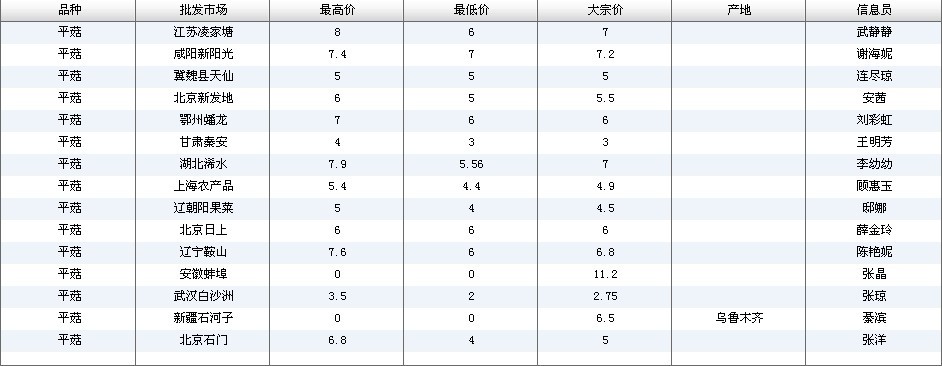 2012.03.13 平菇全国批发市场价格行情 来源:中国农业信息网