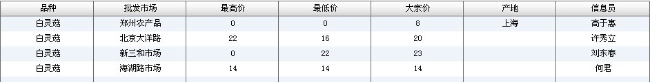 2012.03.13 白灵菇全国批发市场价格行情 来源:中国农业信息网