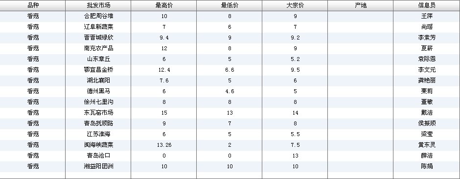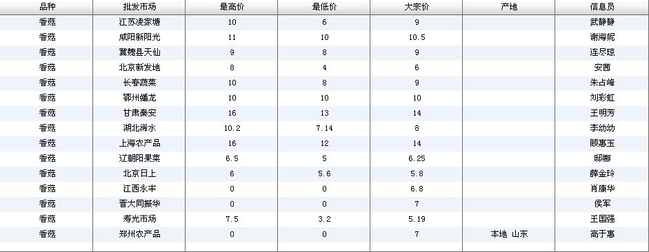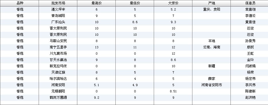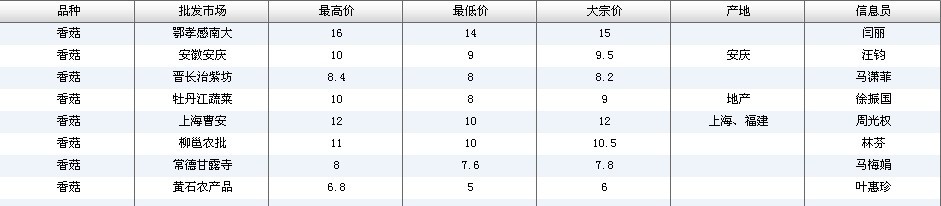 2012.03.13 香菇全国批发市场价格行情 来源:中国农业信息网