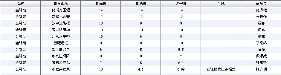 2012.03.13 金针菇全国批发市场价格行情 来源:中国农业信息网