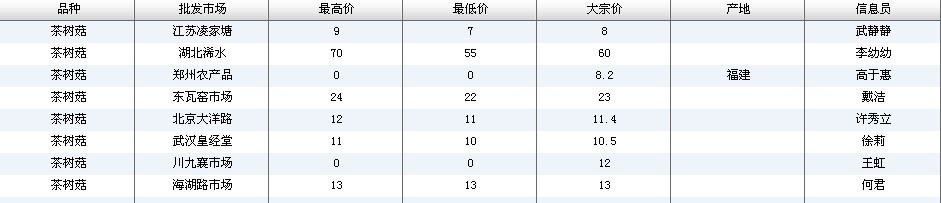 2012.03.13 茶树菇全国批发市场价格行情 来源:中国农业信息网