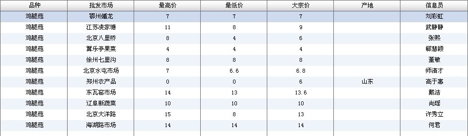 2012.03.14 鸡腿菇全国批发市场价格行情 来源:中国农业信息网