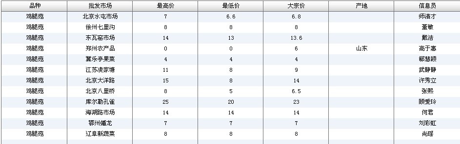 2012.03.15 鸡腿菇全国批发市场价格行情 来源:中国农业信息网
