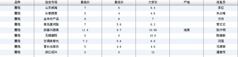 2012.03.16 蘑菇全国批发市场价格行情 来源:中国农业信息网
