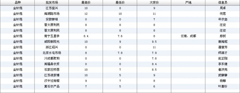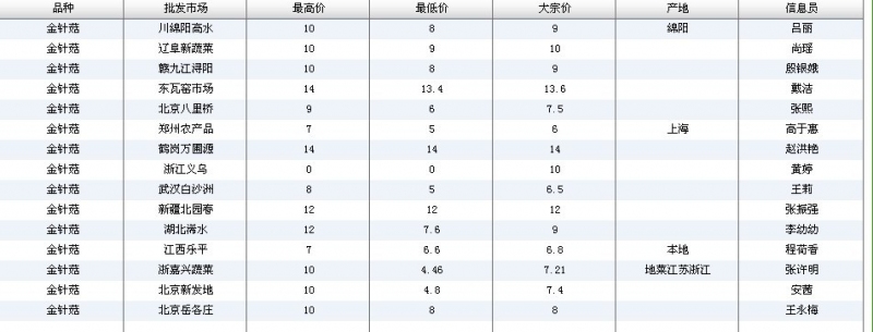 2012.03.17 金针菇全国批发市场价格行情 来源:中国农业信息网