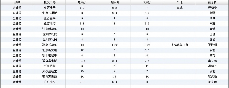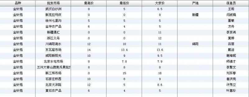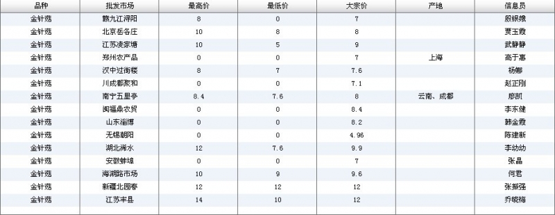 2012.03.19 金针菇全国批发市场价格行情 来源:中国农业信息网