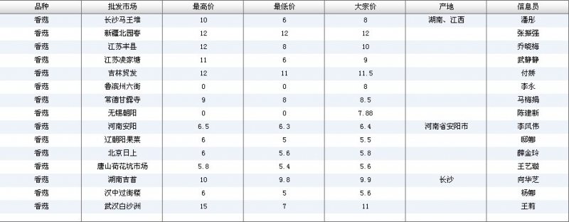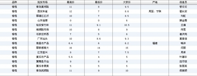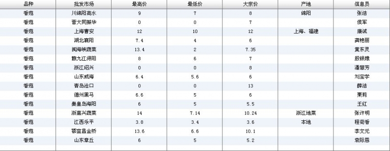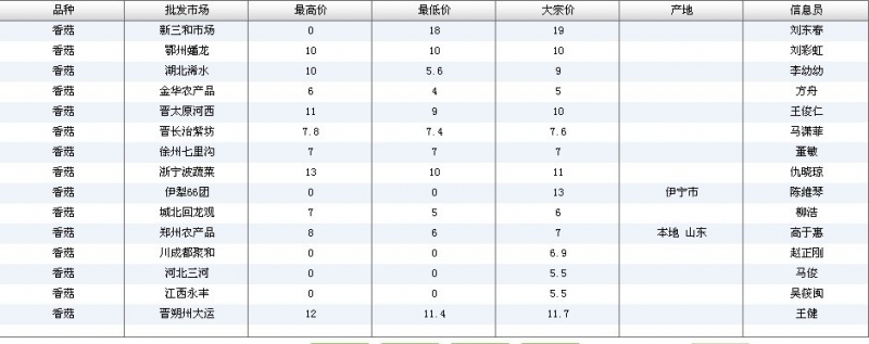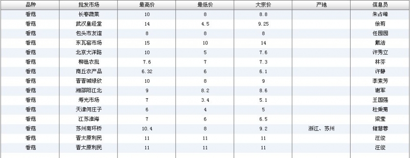 2012.03.20 香菇全国批发市场价格行情 来源:中国农业信息网