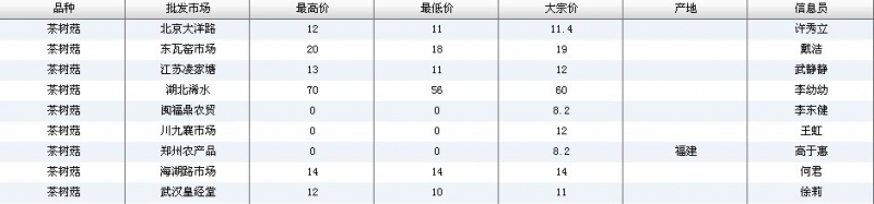 2012.03.21 茶树菇全国批发市场价格行情 来源:中国农业信息网