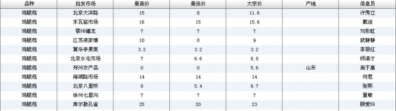 2012.03.21 鸡腿菇全国批发市场价格行情 来源:中国农业信息网