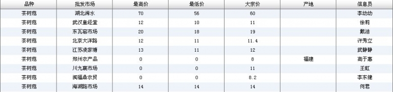 2012.03.22 茶树菇全国批发市场价格行情 来源:中国农业信息网