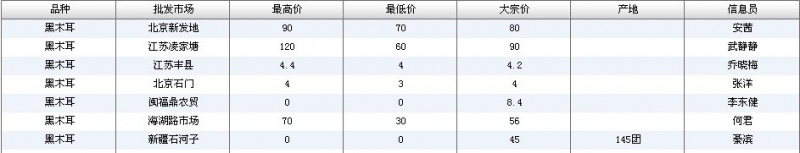 2012.03.22 黑木耳全国批发市场价格行情 来源:中国农业信息网