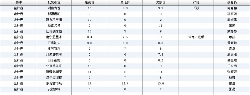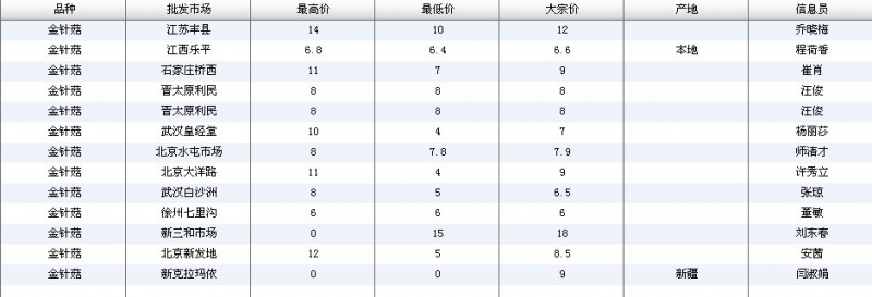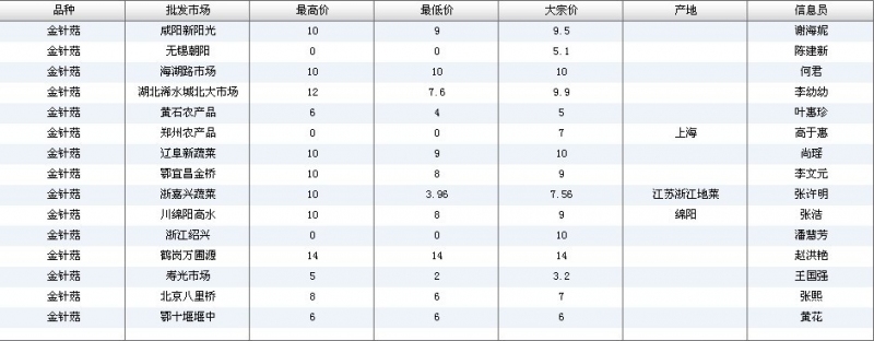 2012.03.23 金针菇全国批发市场价格行情 来源:中国农业信息网