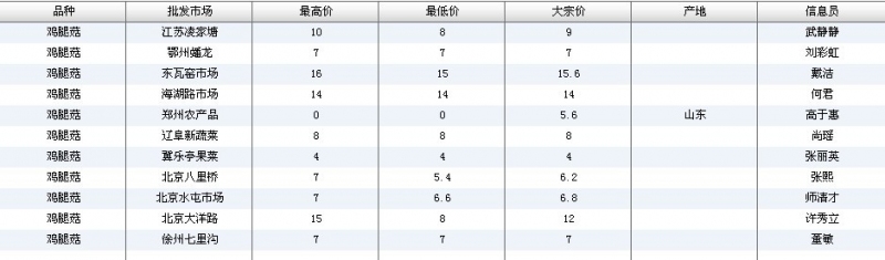 2012.03.23 鸡腿菇全国批发市场价格行情 来源:中国农业信息网