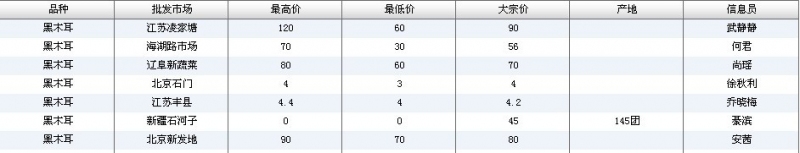 2012.03.23 黑木耳全国批发市场价格行情 来源:中国农业信息网