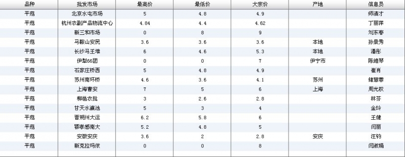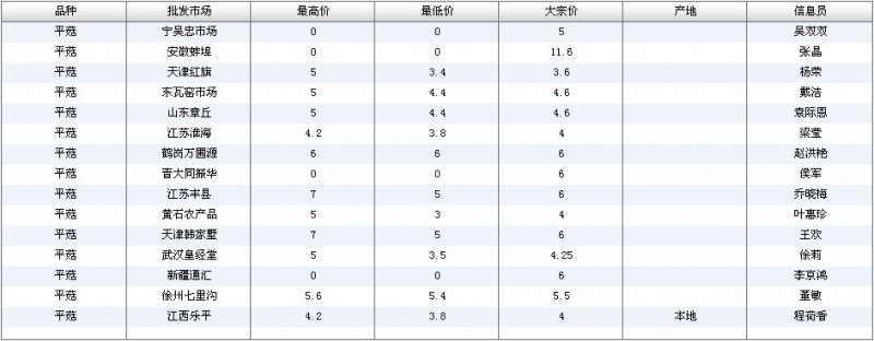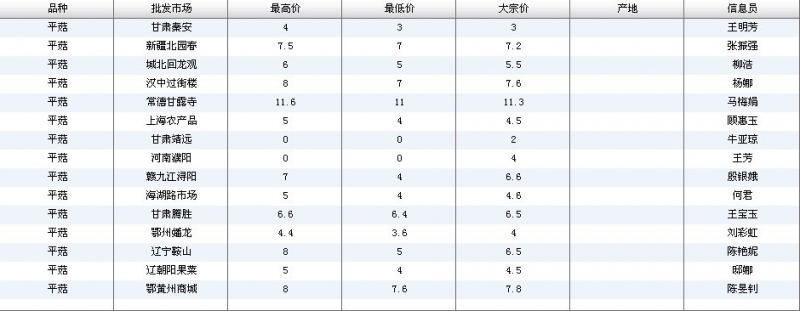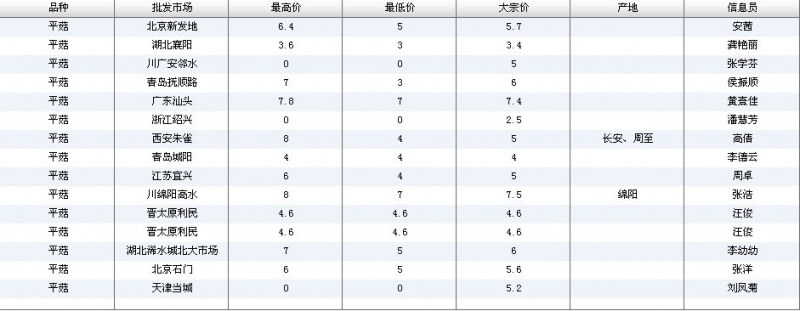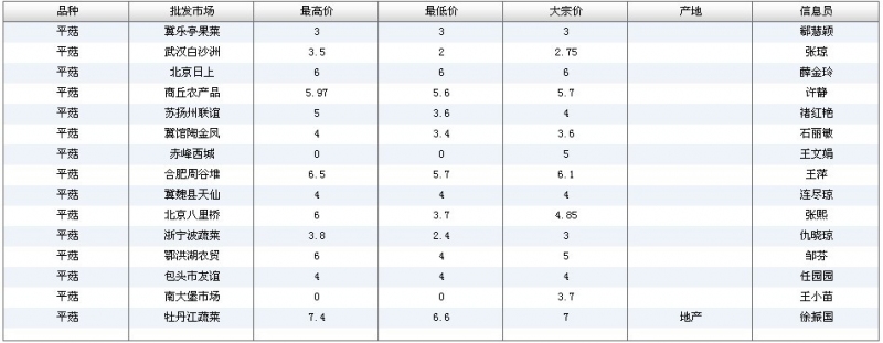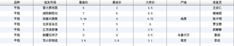 2012.03.26 平菇全国批发市场价格行情 来源:中国农业信息网