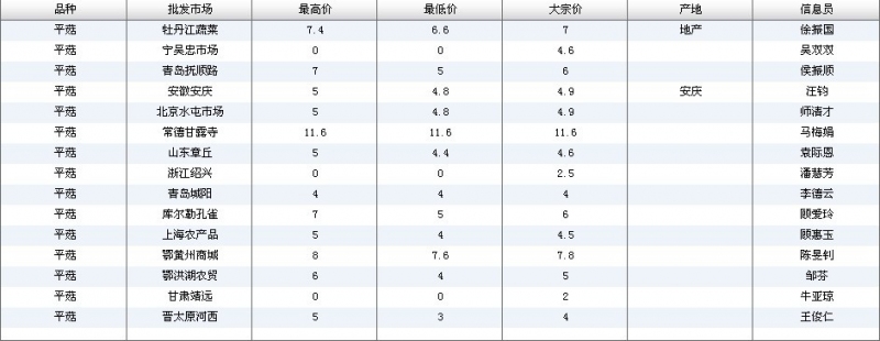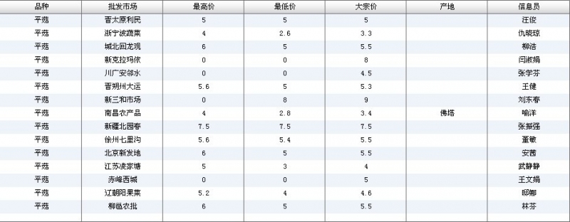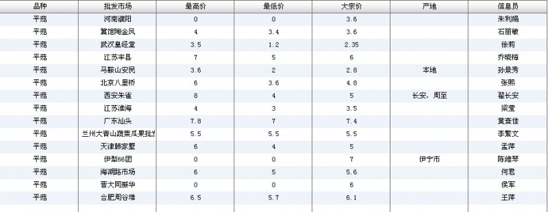 2012.03.28 平菇全国批发市场价格行情 来源:中国农业信息网