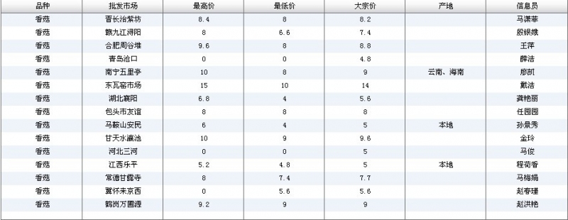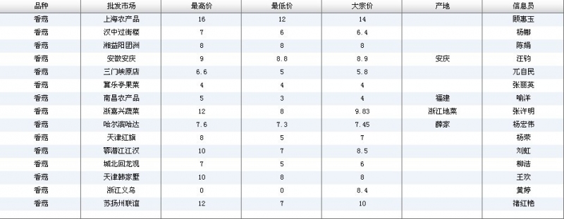 2012.03.29 香菇全国批发市场价格行情 来源:中国农业信息网