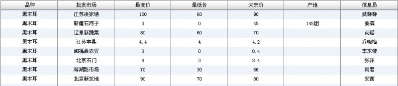 2012.03.29 黑木耳全国批发市场价格行情 来源:中国农业信息网