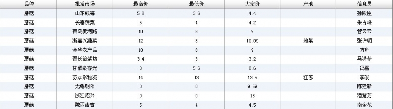 2018年10月11日蘑菇全国批发市场行情