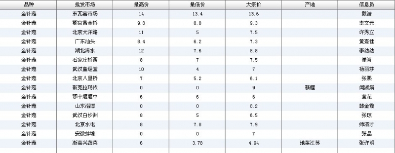 2024年3月8日全国主要批发市场金针菇价格行情