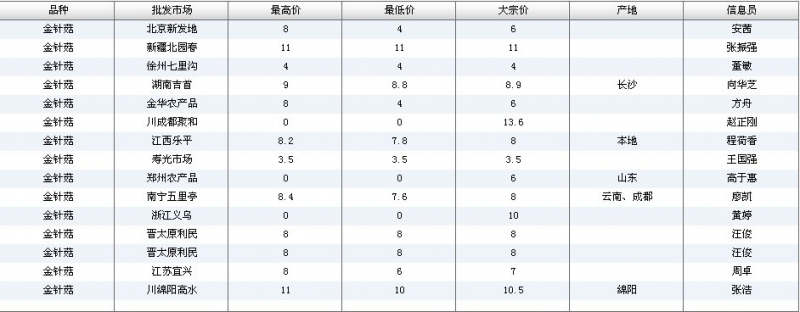 2012.03.30 金针菇全国批发市场价格行情 来源:中国农业信息网