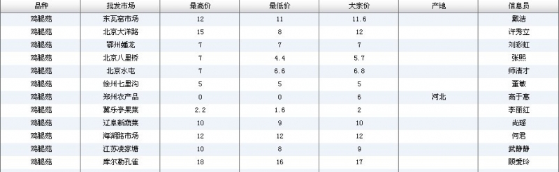2012.03.30 鸡腿菇全国批发市场价格行情 来源:中国农业信息网