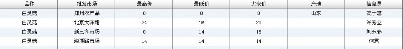 2012.03.31 白灵菇全国批发市场价格行情 来源:中国农业信息网