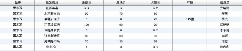 2012.03.31 黑木耳全国批发市场价格行情 来源:中国农业信息网