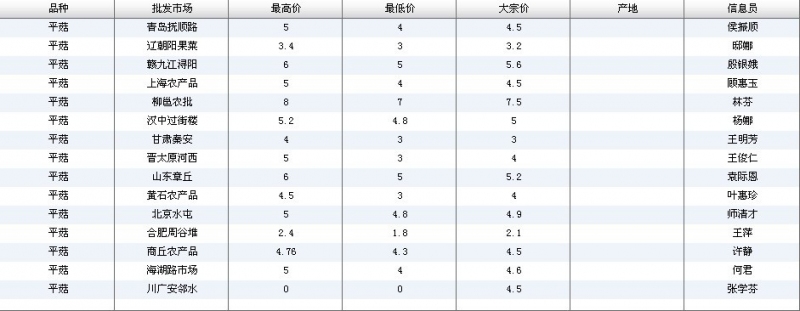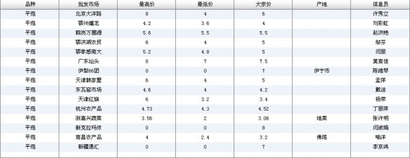 2012.04.01 平菇全国批发市场价格行情 来源:中国农业信息网
